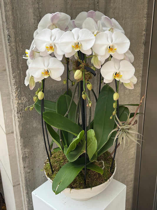 Orchid arrangements are a beautiful, long-lasting way to enhance any space. With their delicate, colorful blooms, they bring a touch of luxury and elegance. Sourced from a local grower, these orchids are available year-round for in-store pickup or delivery. Each gift is carefully wrapped with Lecécé Fleur and Garden’s box or bag.