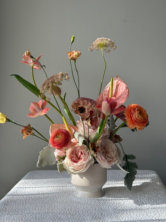 Inspired by the elegance of Japanese Ikebana, our vase arrangements use fresh flowers to create balance, simplicity, and grace. Carefully crafted with the best seasonal ingredients, each arrangement focuses on color, texture, and flow, highlighting the natural beauty of the blooms and reflecting nature's changing rhythms.