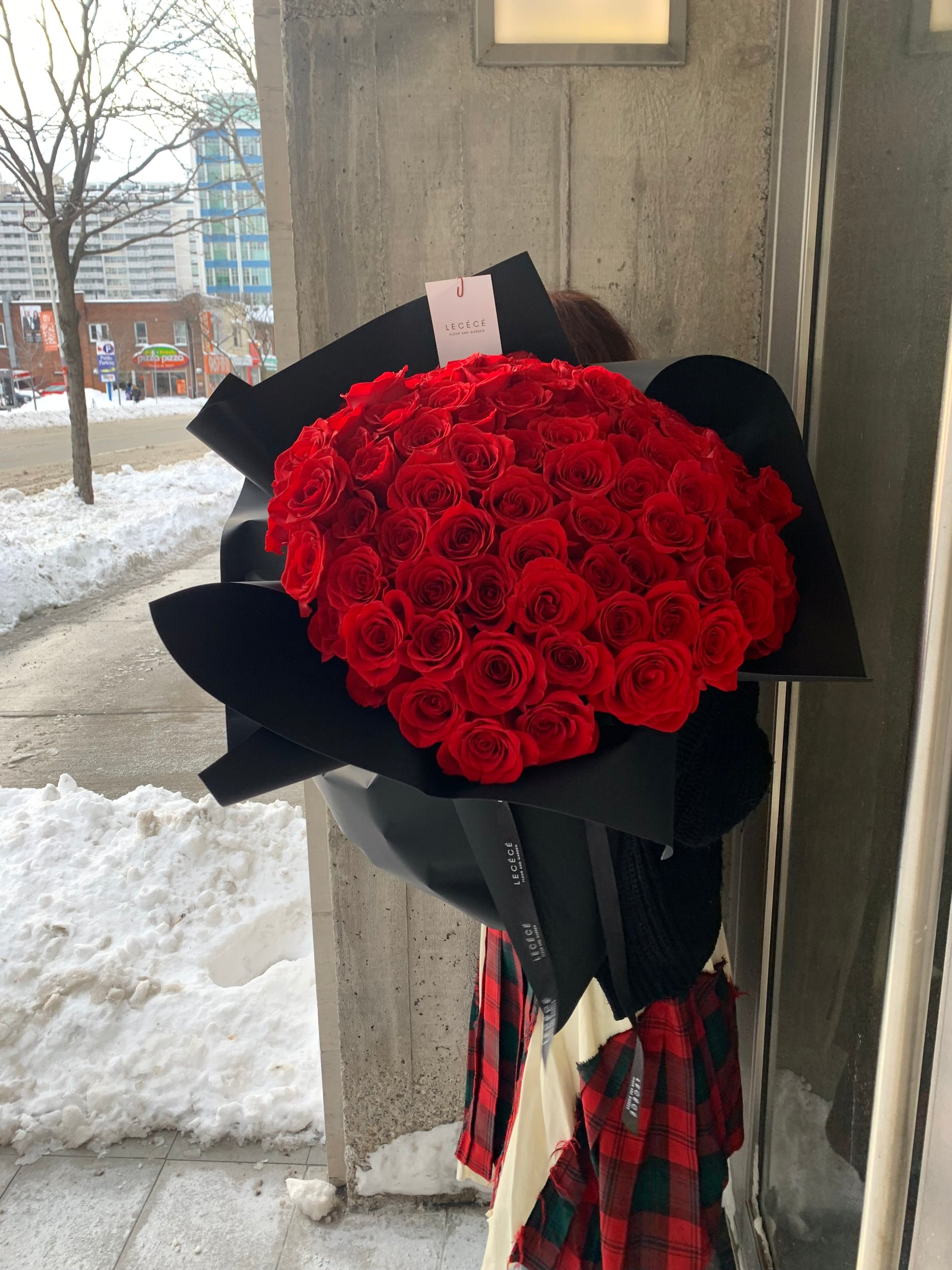 To ensure the freshness of the roses, a waterpack is placed at the bottom of the bouquet, keeping each stem hydrated and fresh, so your gift lasts longer. Whether you're expressing deep affection, celebrating a special occasion, or making a lasting impression, this exquisite arrangement is designed to convey beauty and sophistication in every petal.