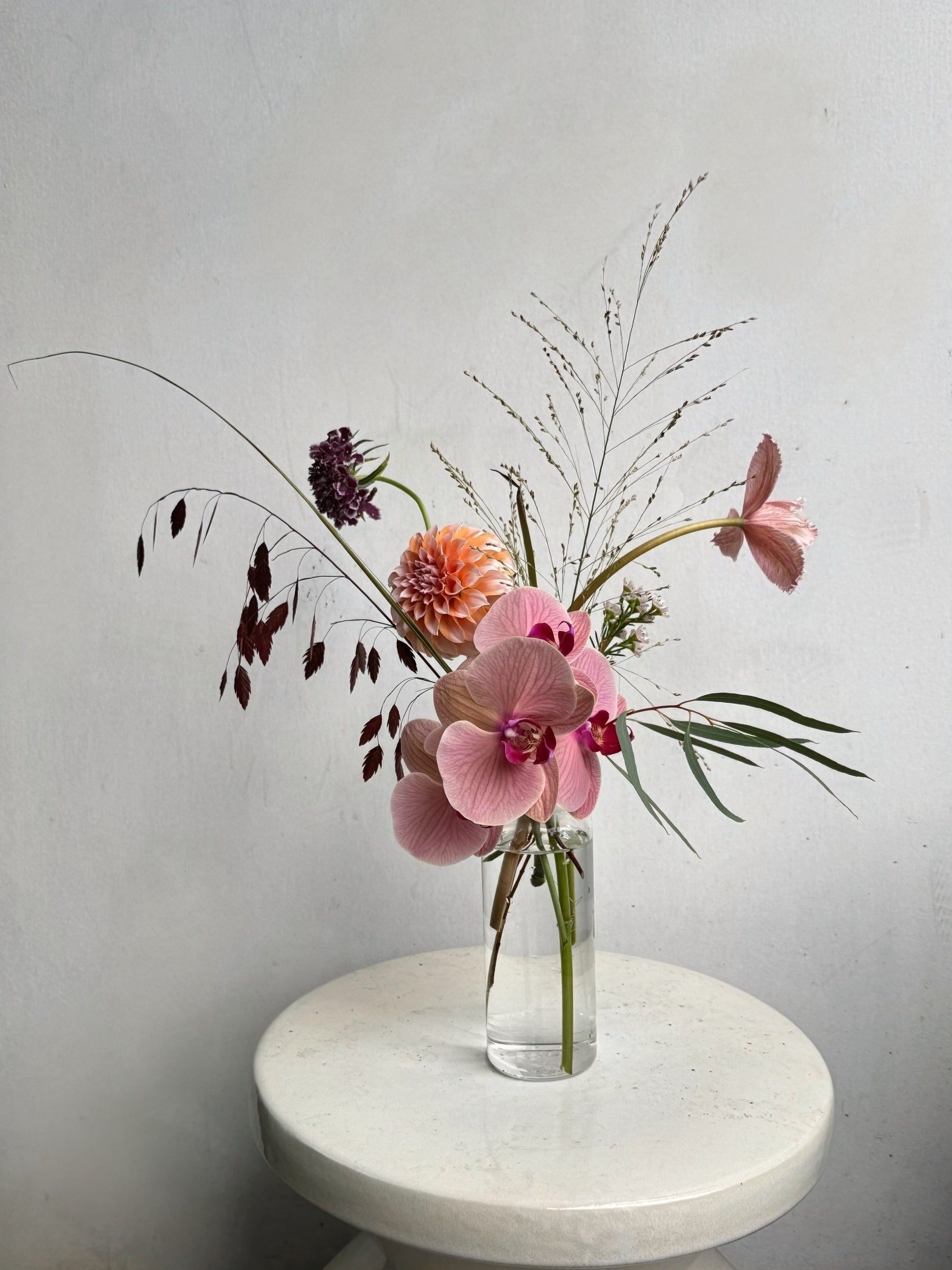 The Fresh Bottle features premium flowers and lush foliage, artfully arranged in a glass bottle. Crafted in our signature freestyle style with a focus on colour, texture, and flow.