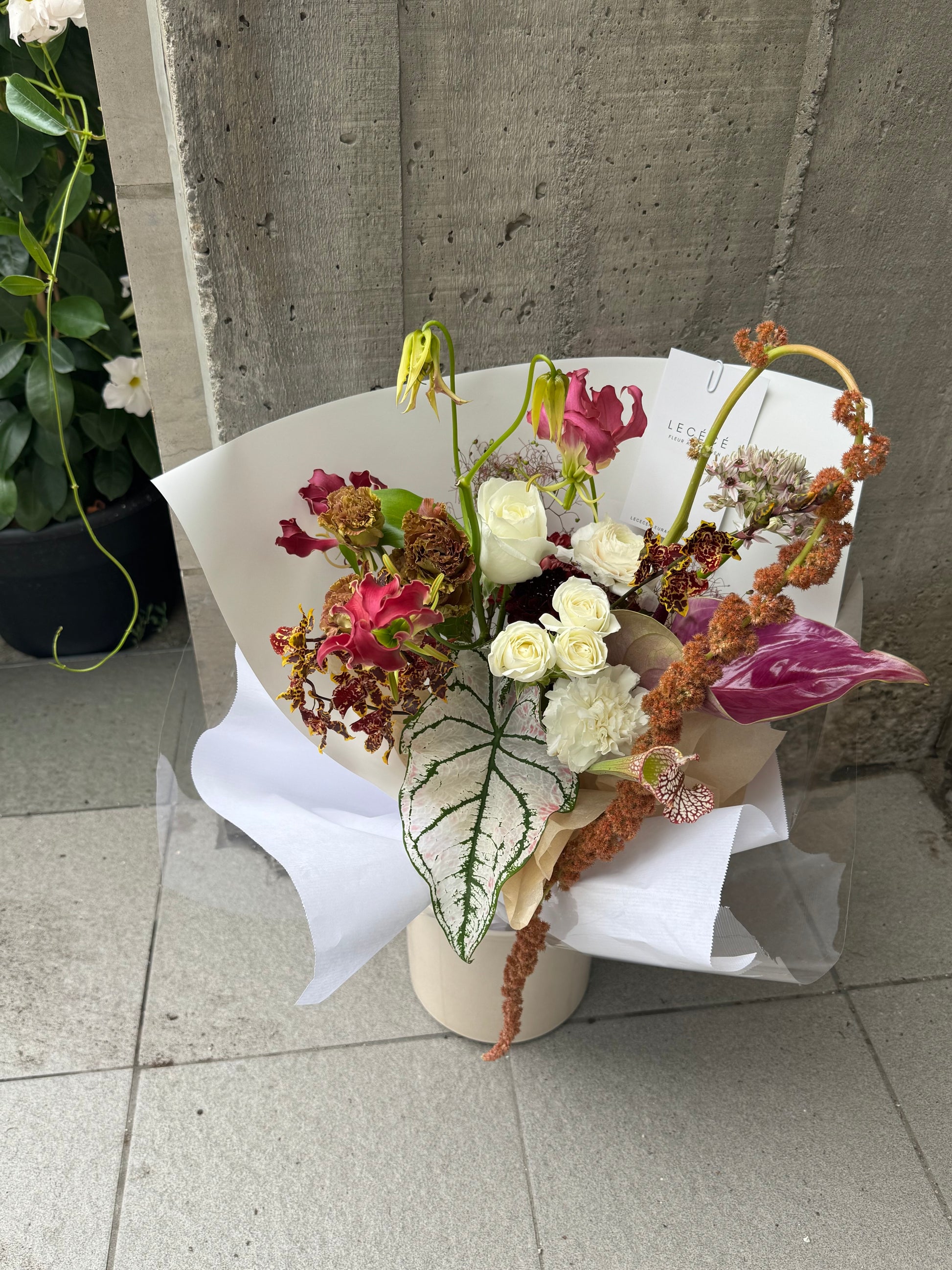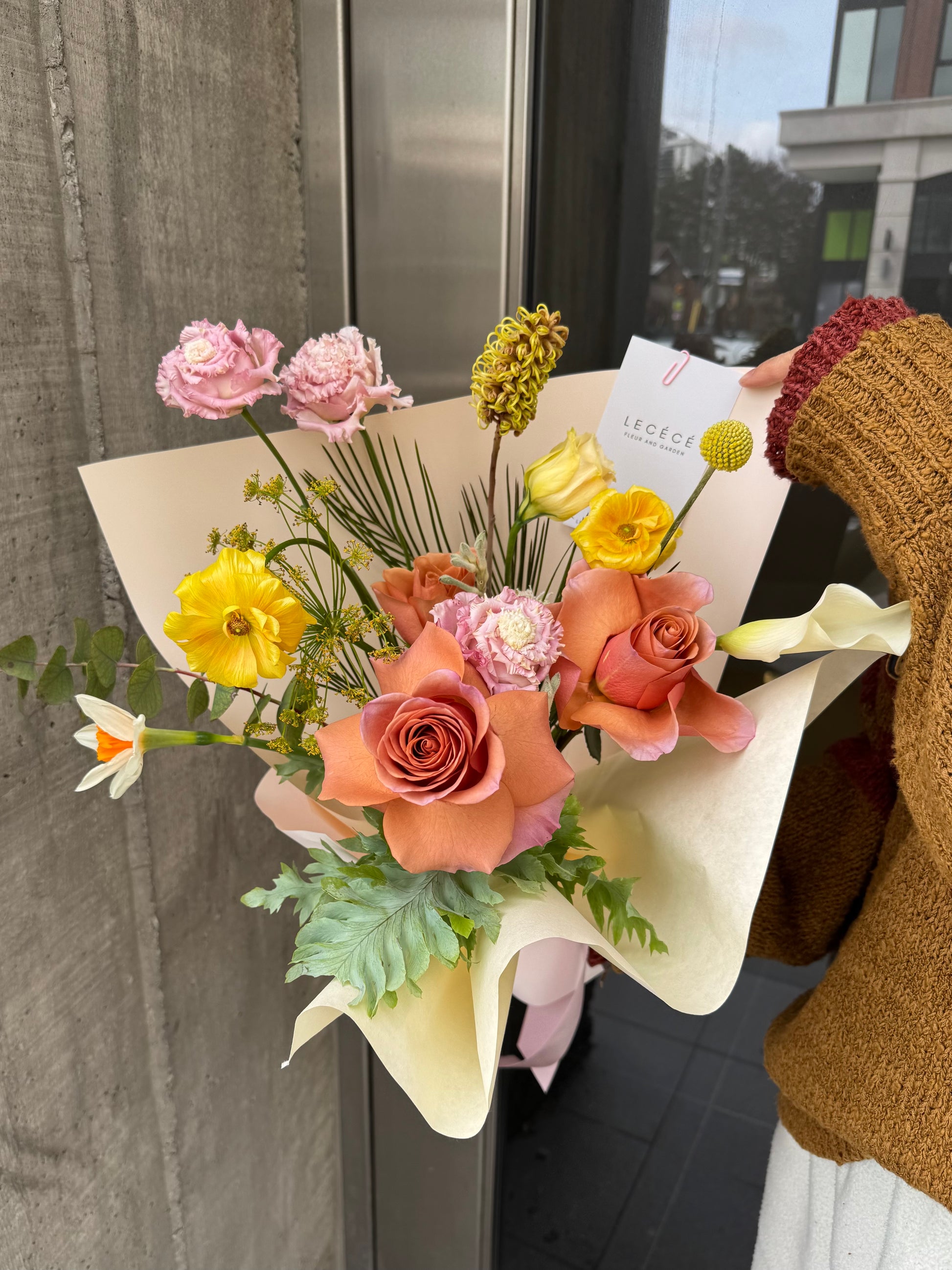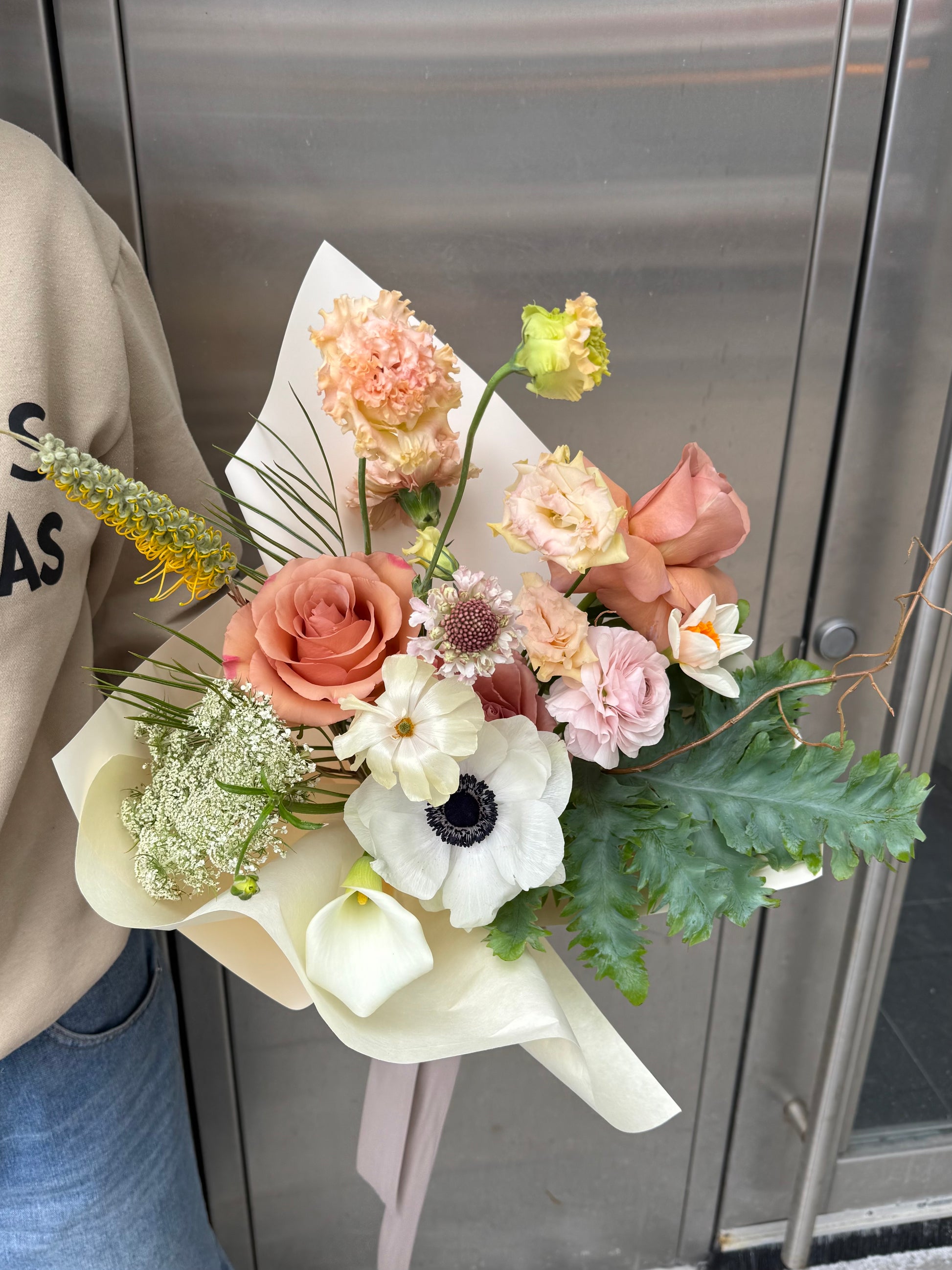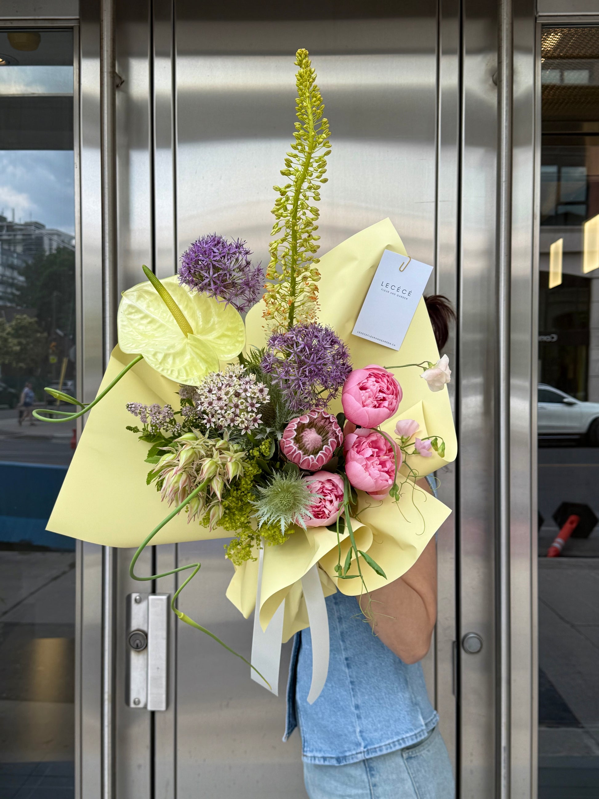 The Wild Bunch bouquets are artfully designed by our florists using the finest seasonal blooms and lush foliage, embracing a natural, freestyle aesthetic. Each arrangement is thoughtfully curated with a keen eye for color, texture, and movement, resulting in effortlessly beautiful compositions.