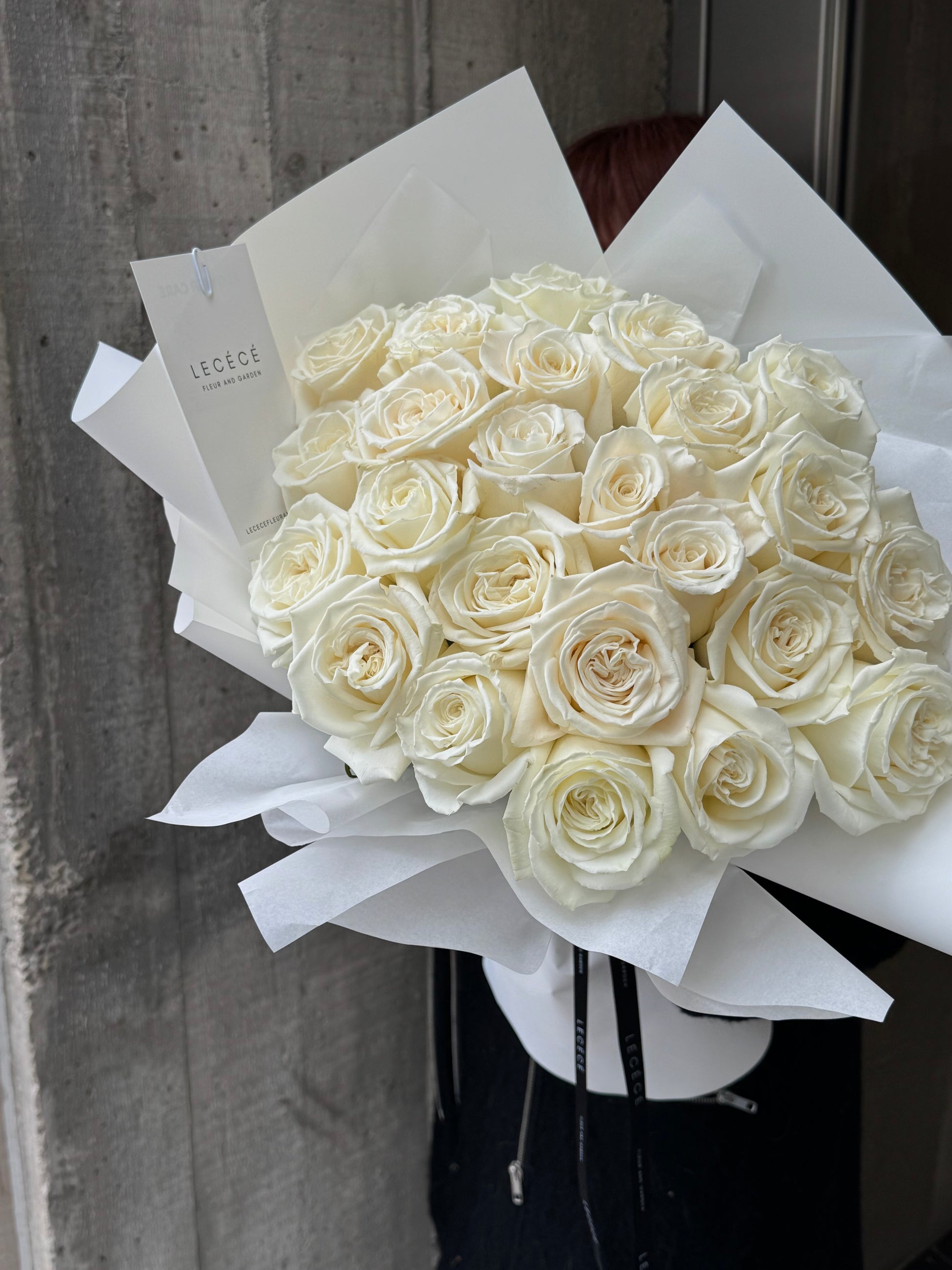 Sometimes, simplicity speaks the loudest. Each rose is carefully selected and elegantly arranged to create a breathtaking display. Wrapped in luxurious paper and finished with a satin ribbon, this stunning bouquet is sure to impress on any special occasion.